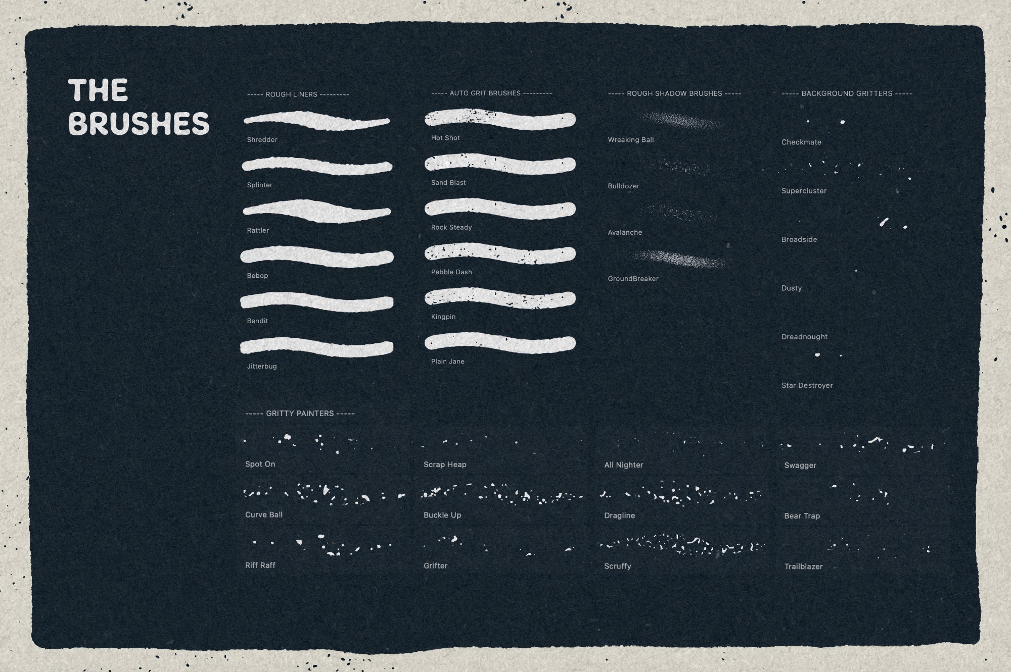 | Background Gritters | 6 | Tie your entire composition together with a cohesive, rugged finish. |